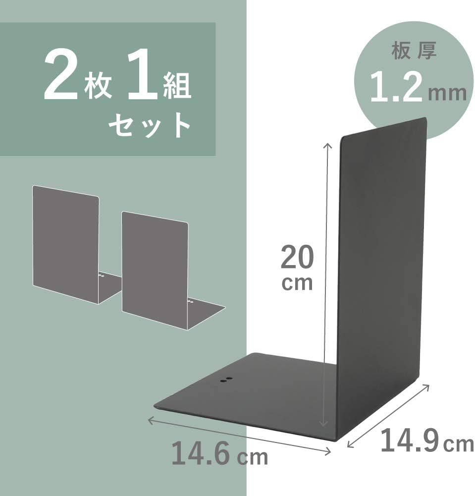 リヒトラブ ブックエンド | ★4.2 | ワイドタイプ:2×8×29.7cm スーパーワイド:10×10×10cm ハイタイプ:2×8×21cm | マグネット付きでキャビネットに固定可能。 3タイプから選べる。 | Amazon / 送料無料 |