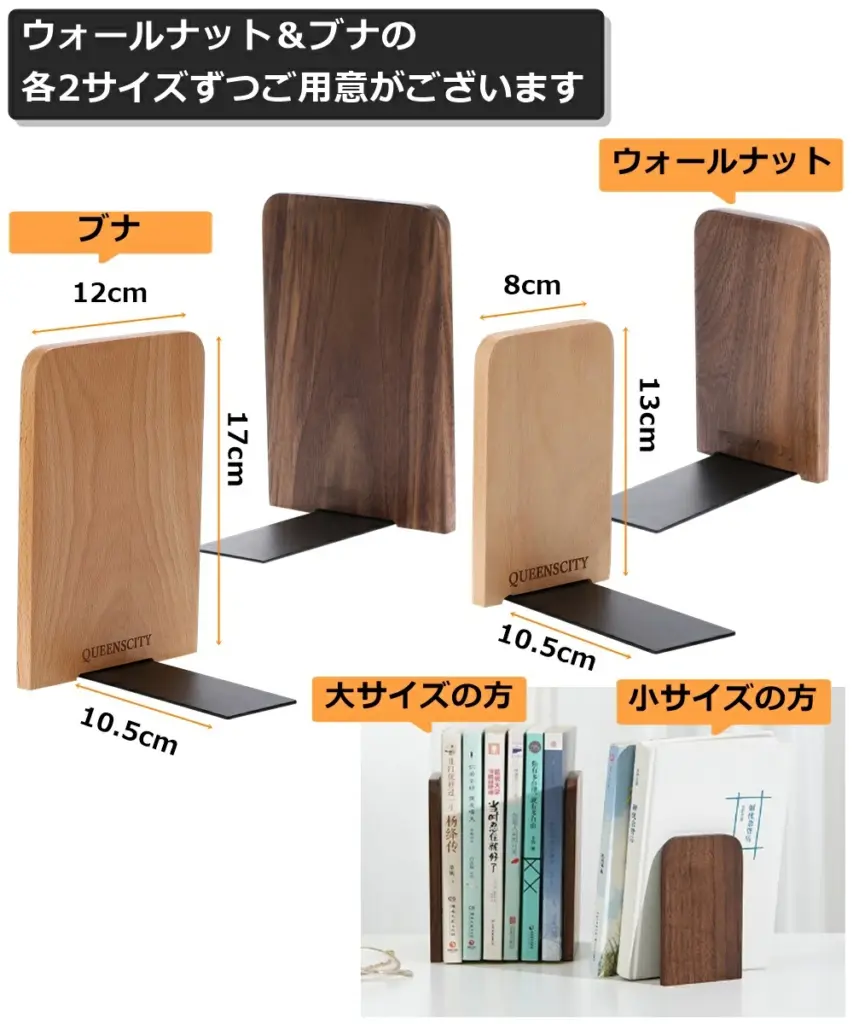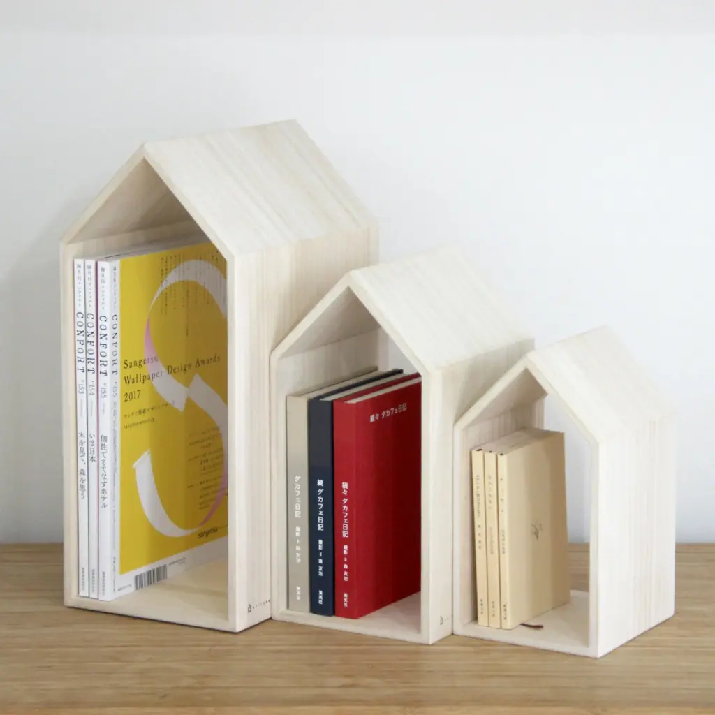 桐で作った軽いブックエンドで、3サイズが1まとめになっている!