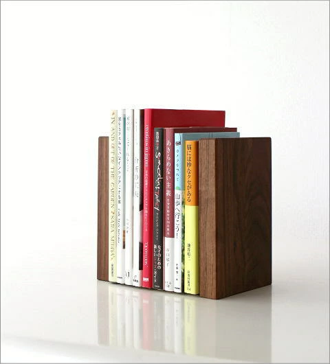 - ウォールナットのシックな色目と、無垢材のスタイリッシュなシンプルな形のスッキリとしたブックエンドです。
