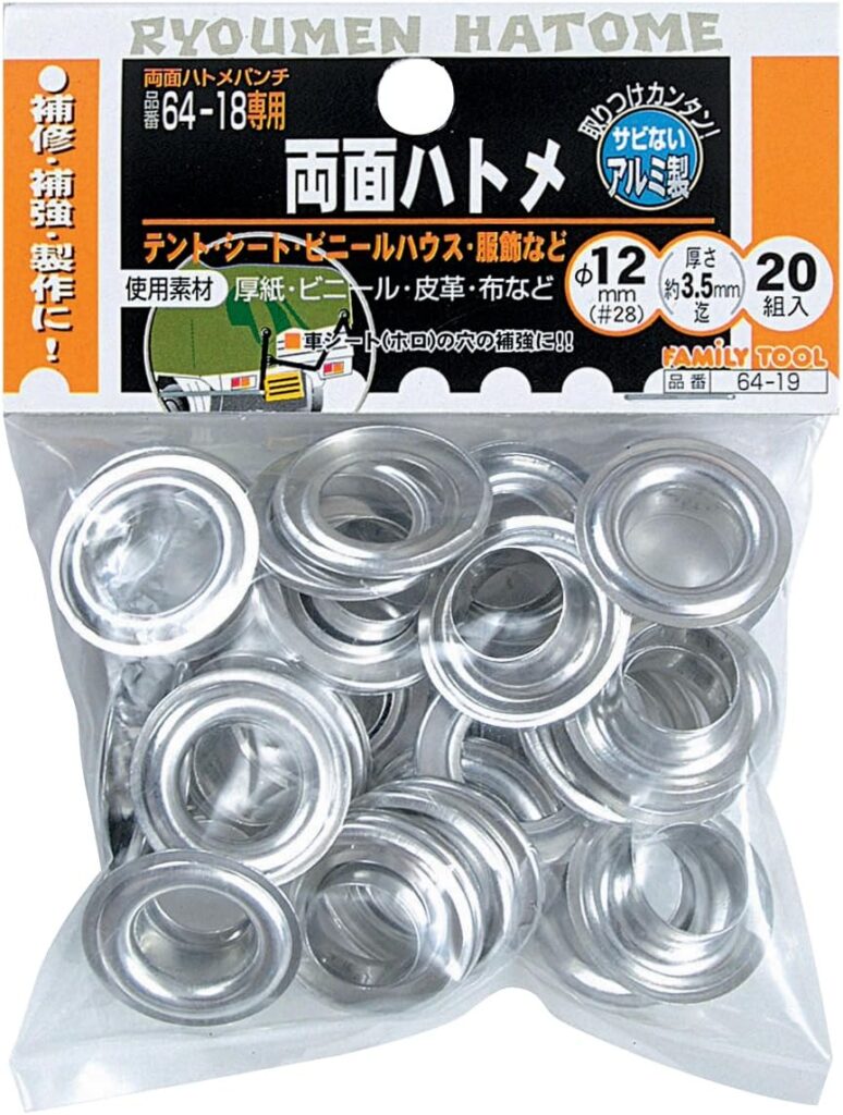 「手軽に使えるアルミ製の両面ハトメ」をお探しなら、「FAMILY TOOL 両面ハトメ」がオススメですね。