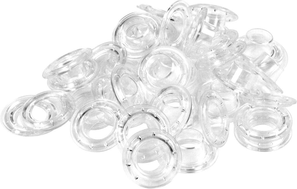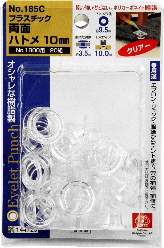 SK11 プラスチック両面ハトメ | ★4.8 | ハトメ穴径約9.5mm、20組入 | ・樹脂製で軽くて強い ・サビない ・きれいな仕上がり | Amazon / 無料 |
