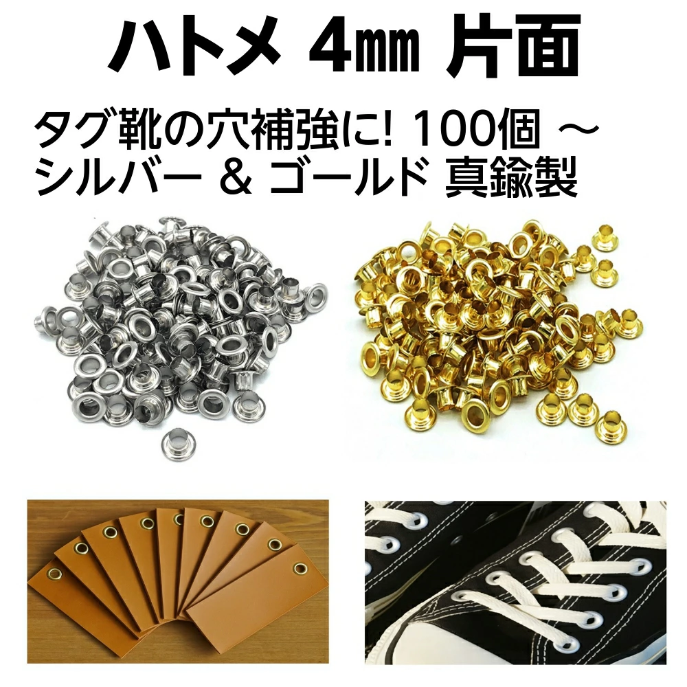 真鍮製 片面ハトメ | ★4.89 | 片面ハトメ4mm | ・丈夫な真鍮素材でサビにくく長持ち ・2色展開 | 楽天市場 / 無料 |
