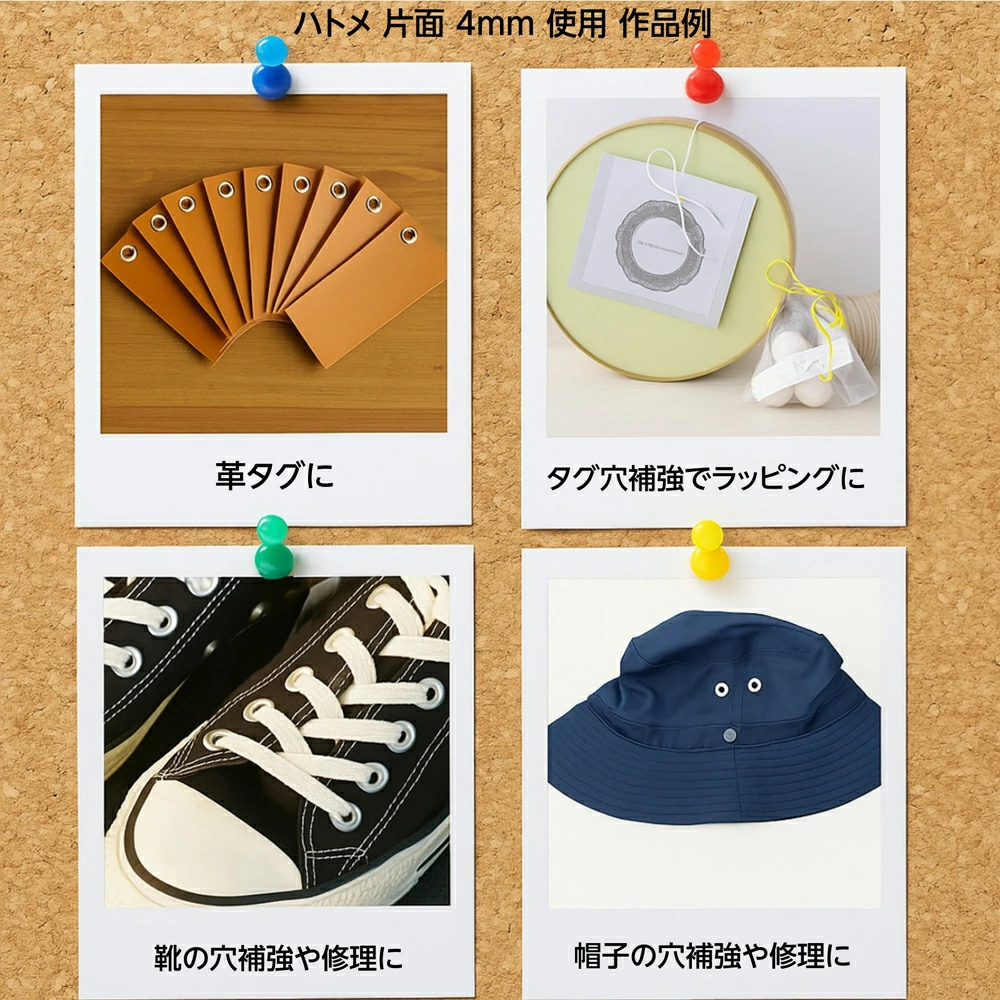 - 袋物・服飾などの穴の補強、アクセントに使えます。