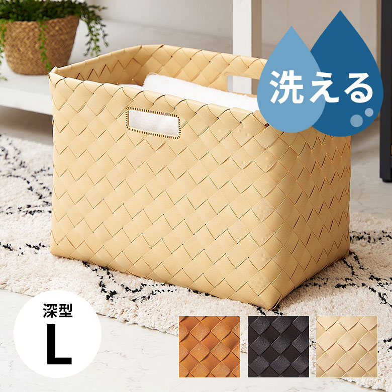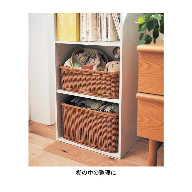 「造りのしっかりしたカラーボックス収納」をお探しなら、「ベルメゾン 洗えるラタン調収納バスケット 」がオススメですね。