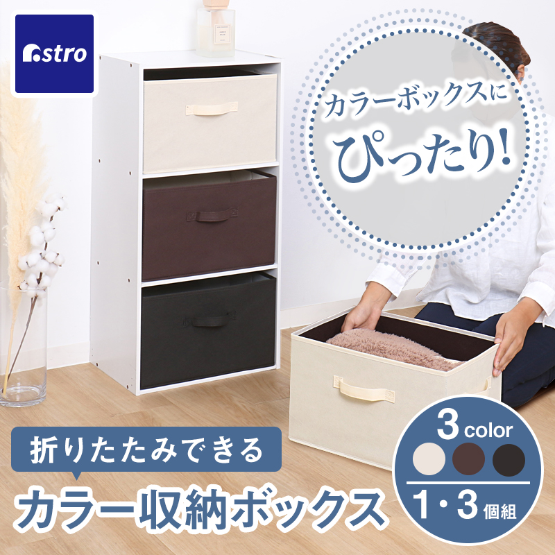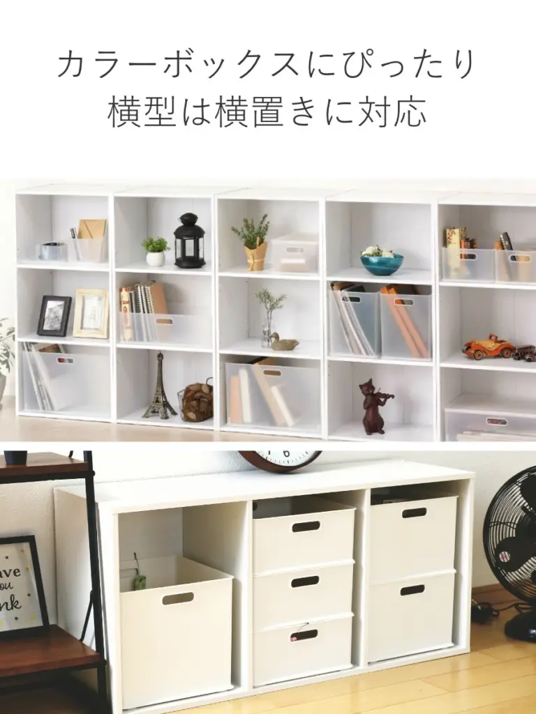 • Lサイズ(38cm×27cm×14cm)とXLサイズ(38cm×27cm×22cm)はカラーボックスにも合う大きさで、中身を隠しながら収納できます。