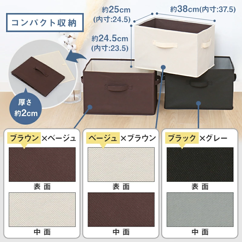 • 生地の内面をコーティングしたコンパクトにたためる布製ボックスです。