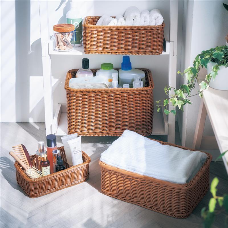 ベルメゾン 洗えるラタン調収納バスケット★4.94L:38×27×14cm