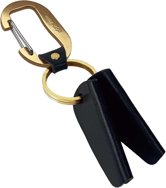 真鍮のカラビナに本革のキーカバーがついた鍵カバー