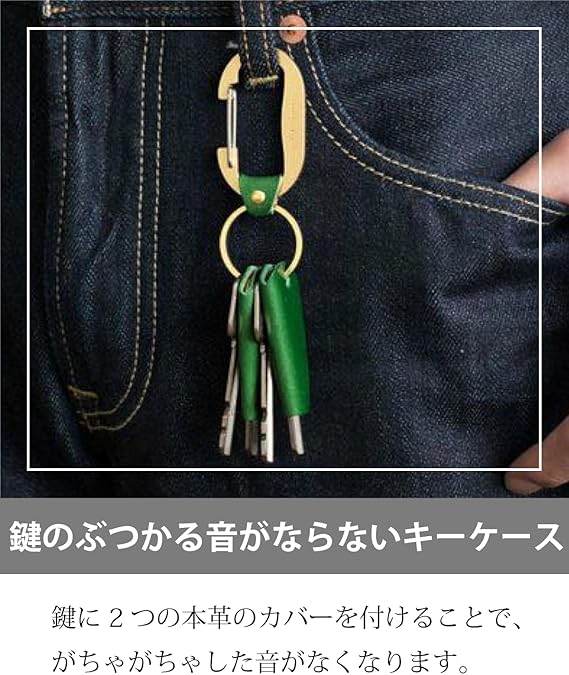 - 本革の鍵カバーが2つ付属し、鍵同士のぶつかる音がならないキーケース。