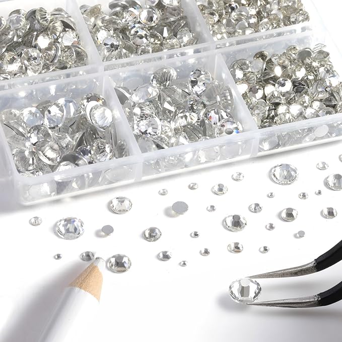 - 商品内容は2箱パック、10サイズのネイル用ホワイトラインストーン計8,300個、ワックスペンシル2本、ガラス ラインストーン フラットバック用ピンセット1本です。