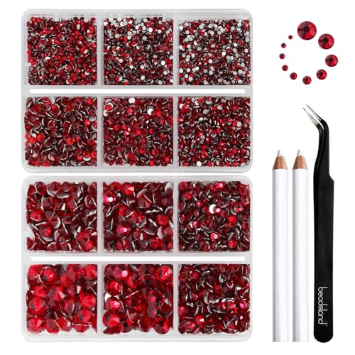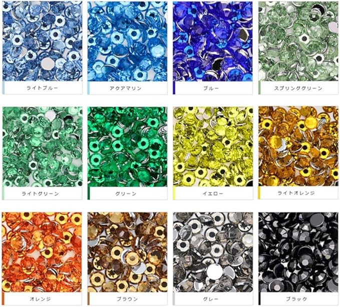 Beadsland ラインストーン | ★4.8 | 1.2mm〜6.5mm(10サイズ) | ガラス製・カットが綺麗、計8,300個(2箱パック)、ワックスペン2本&ピンセット付属、18色展開 | Amazon / 送料無料 |