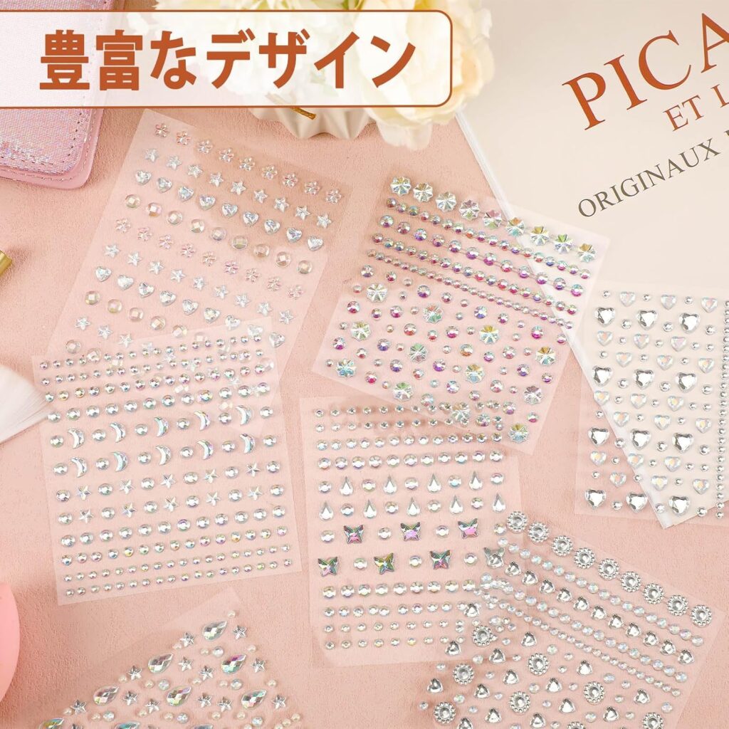 「3,300粒の大容量」をお探しなら、「Rosi home ラインストーンステッカー」がオススメですね。