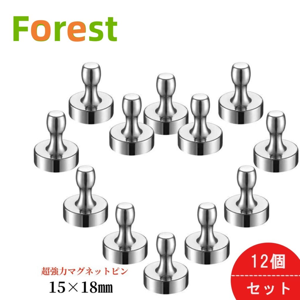 次に、楽天市場のランキング上位の、「Forest 超強力 マグネットピン 12個セット」をご紹介します。