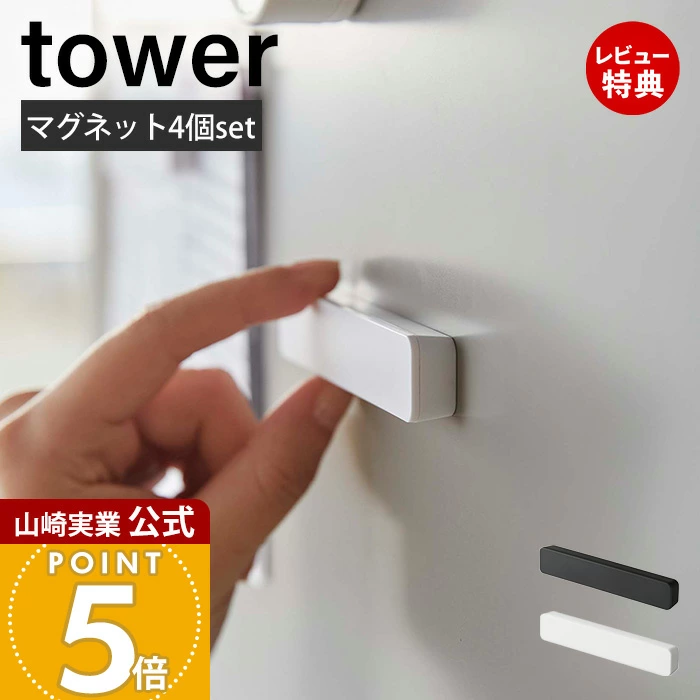 山崎実業 tower マグネットバー 4個セット | ★4.59(70件) | 約10×1×1.8cm | シンプルデザイン、幅広い用紙固定可能、側面斜めで掴みやすい、冷蔵庫・バスルームなど磁石面で使用可能、2色展開 | 楽天市場/送料無料 |
