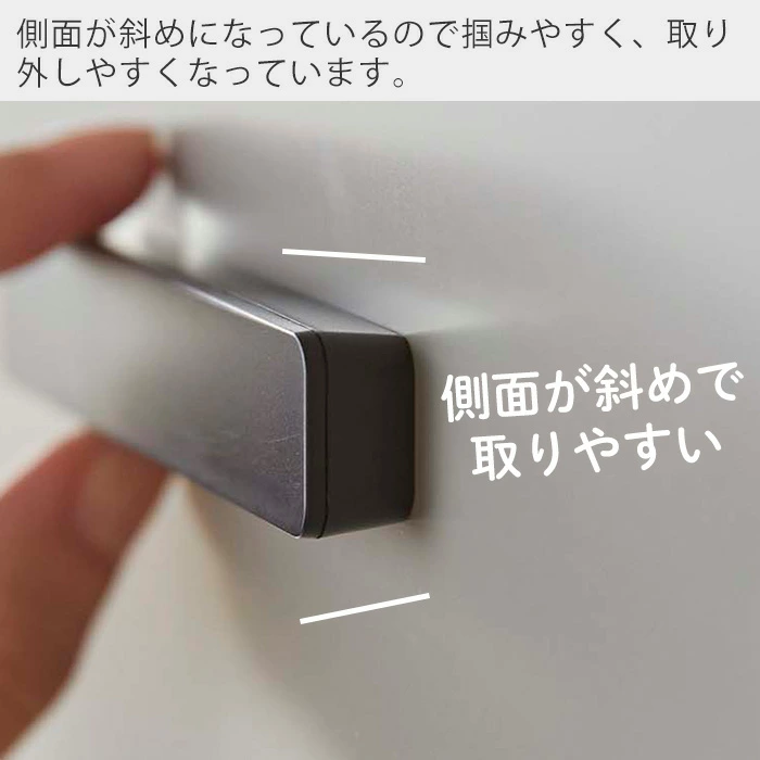 - 側面が斜めで掴みやすく、取り外しも簡単。