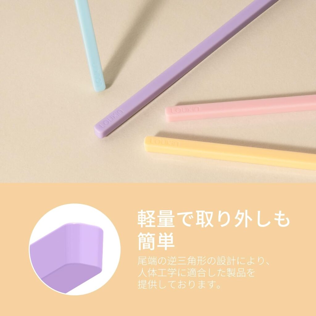 - 端が逆三角形デザインで取り外しやすく、人間工学に基づいた滑らかな手触り。