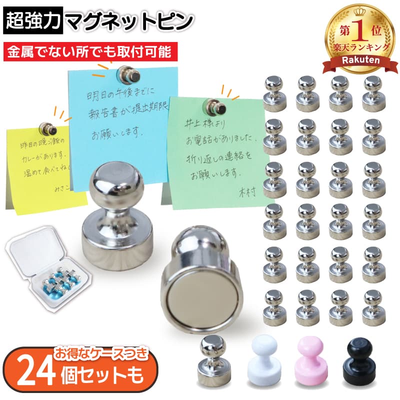 Forest 超強力 マグネットピン 12個セット | ★4.63(30件) | 約15×18mm | 1個でA4用紙28枚固定可能、ミニマグネットフックとしても使用可、取り外し簡単・跡残らず、無駄のないデザインで空間に馴染む | 楽天市場/送料無料 |