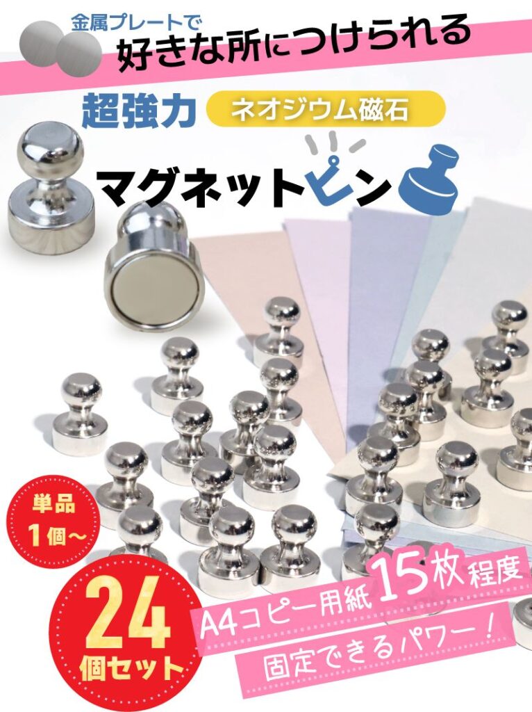 「マグネット」は100均でも買えますが、楽天やAmazonもなかなかの品ぞろえでしたね。
