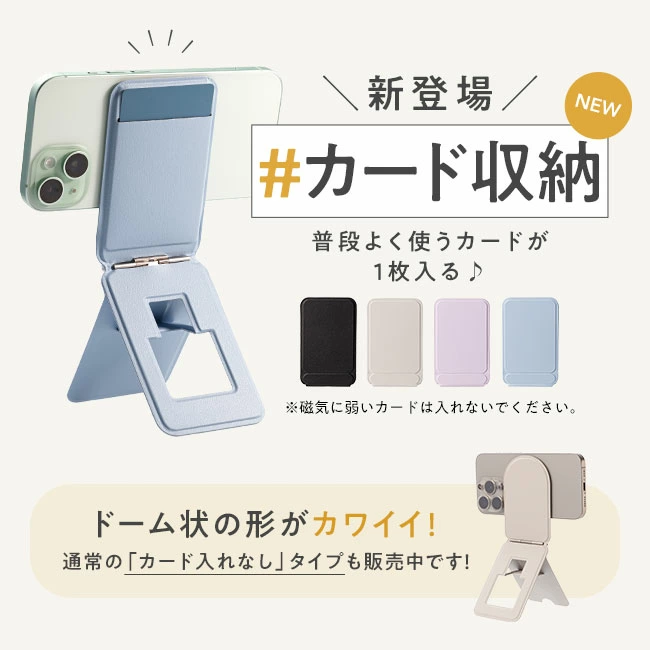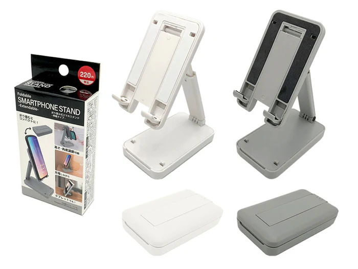 特徴 | ・折りたたみ式(安定感あり、高さ・角度調整可、滑り止め付) ・フレキシブルアームタイプ ・ミラー付き | ・伸縮式(高さ24~34cm調整可、安定感あり) ・うさ耳デザインなど可愛いデザイン ・折りたたみ式やミニサイズも展開 | ・卓上タイプ(高さ24~32cm調整可、安定感あり) ・カードを飾れるタイプ ・カードケース付きや多機能型も展開 |