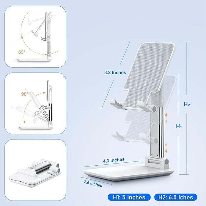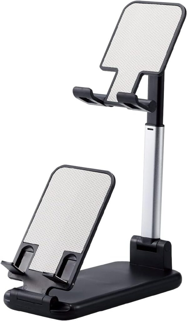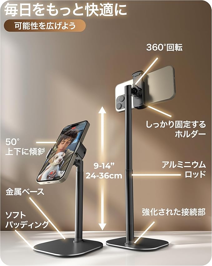 - 調整可能な伸縮式スマホスタンド。スタンドの高さは、8cmから16cmまで簡単に調整できます。