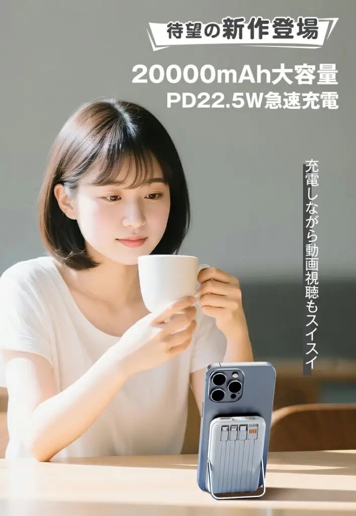 - 20000mAhの大容量を誇り、長時間の外出や旅行でも安心してご利用いただけます。
