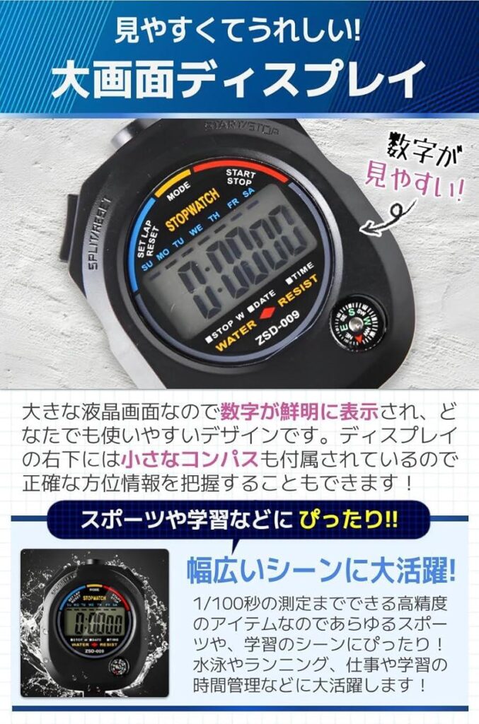 続いて、楽天市場やAmazonの人気商品から、ワンランク上の高品質ストップウォッチを5つご紹介していきますね。