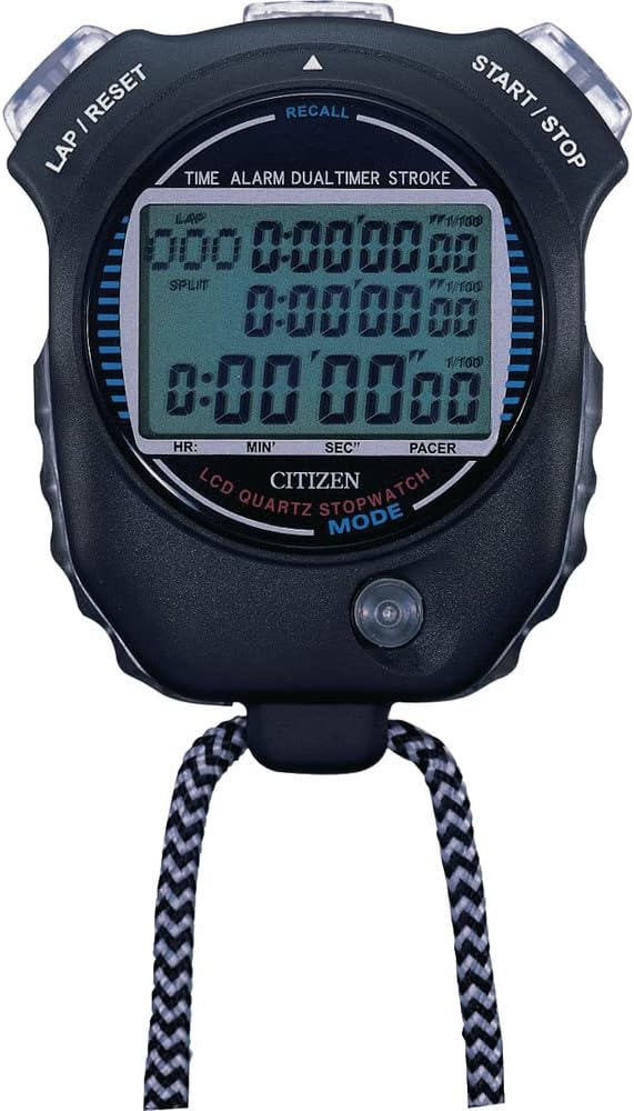 リズム(RHYTHM) シチズン ストップウォッチ | ★4.0(318件) | 81×66×23mm 重量:80g | ・シチズンのスタンダードモデル ・防滴(JIS防滴2型) ・単純計時、積算、スプリット計測 ・アラーム、カウントダウン、カレンダー | Amazon/送料無料 |