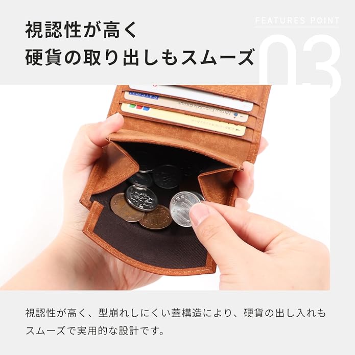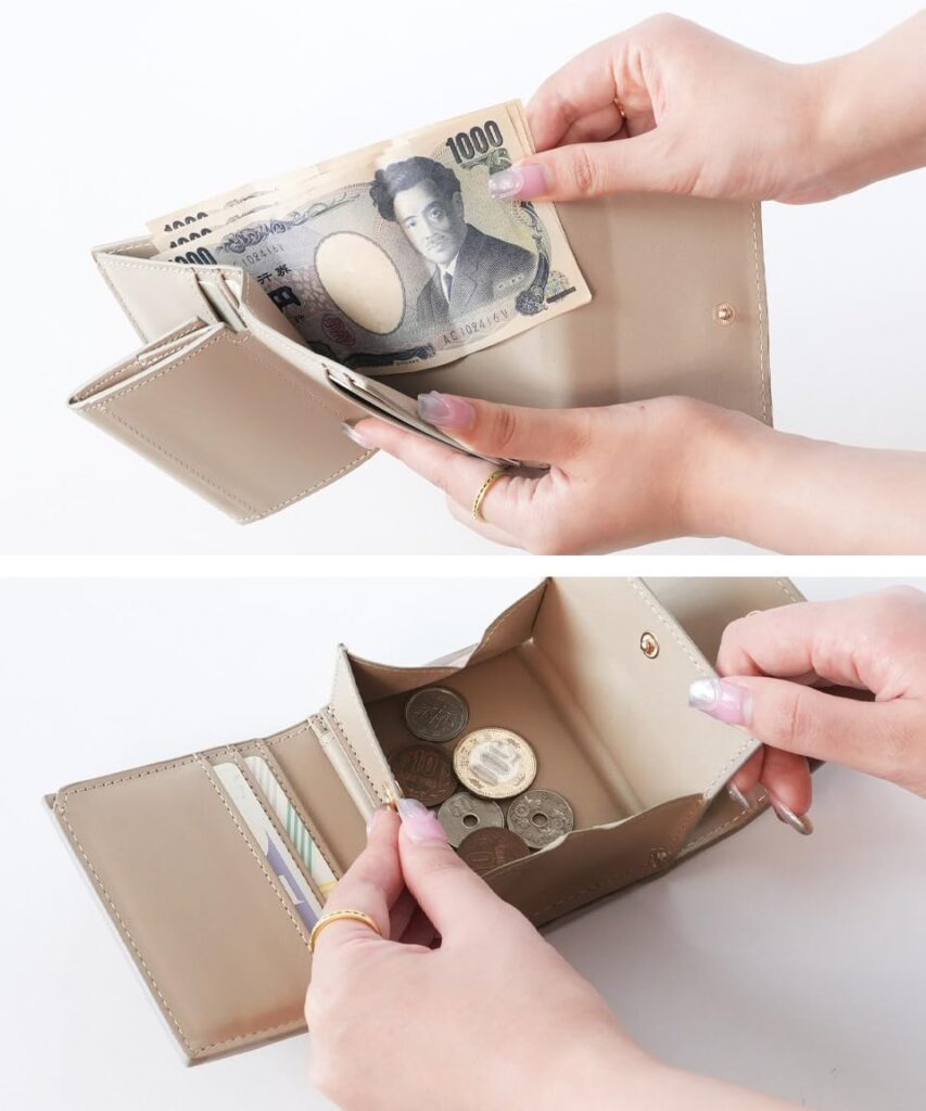 - 縦からも横からも出し入れできる札入れで、支払いもスマートです。