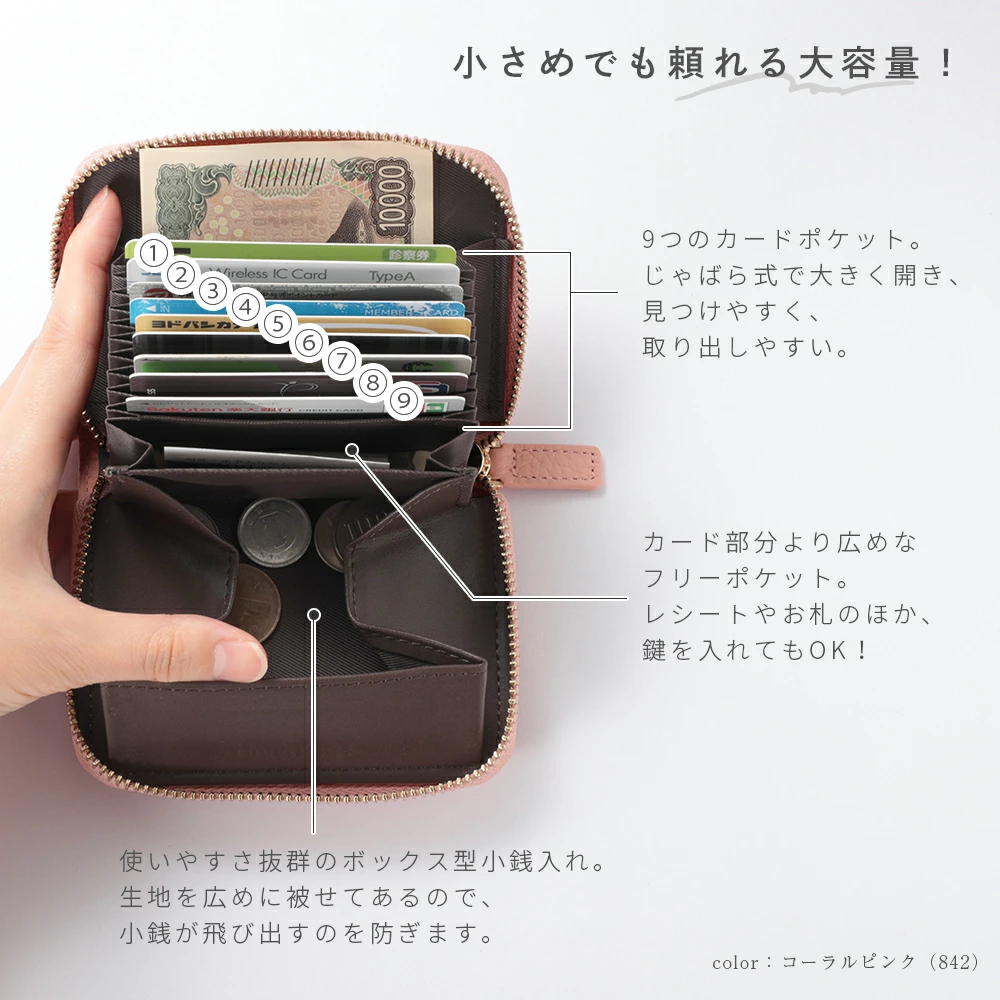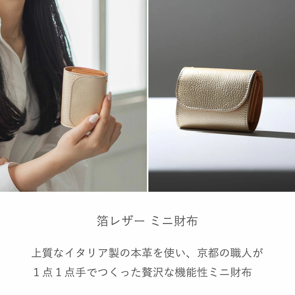 - 上質なイタリア製の本革を使い、京都の職人が1点1点手でつくった贅沢な機能性ミニ財布です。