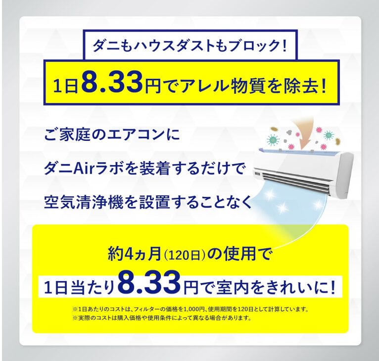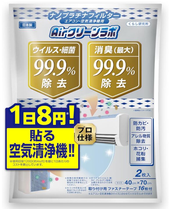 貼る空気清浄機のような商品をお探しなら、「‎Airクリーンラボのエアコンフィルター」がオススメですね。