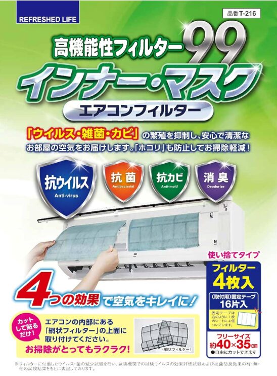 取り換えサインがでたらパッと交換するだけのものをお探しなら、「東洋アルミのエアコンフィルター」がオススメですね。