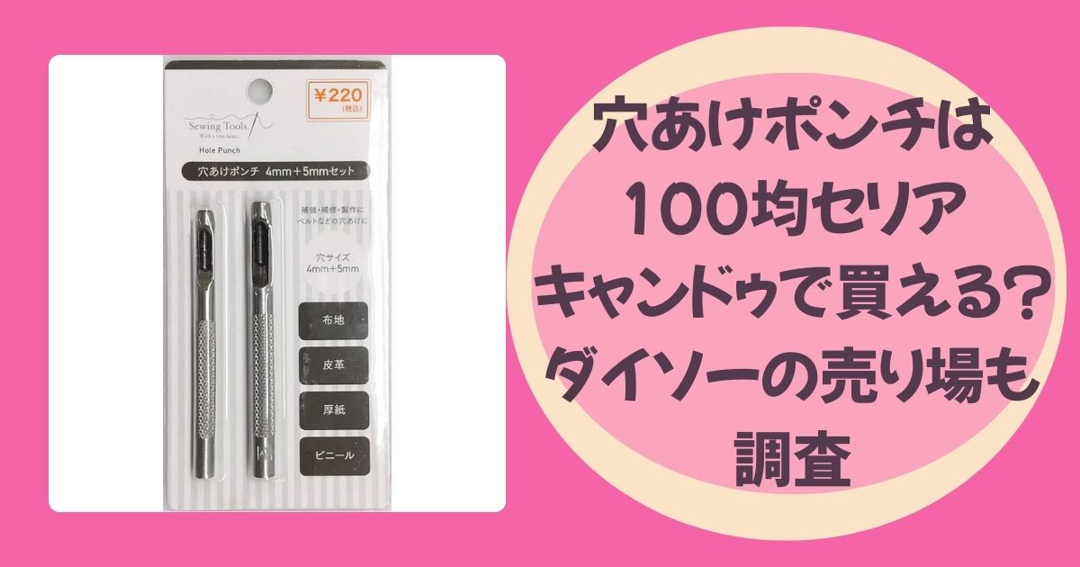 穴あけポンチは100均ショップで取り扱いがありました。