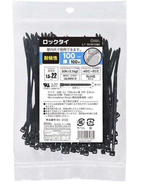 室内外で使用できるものをお探しなら、「オームの結束バンド」がオススメですね。