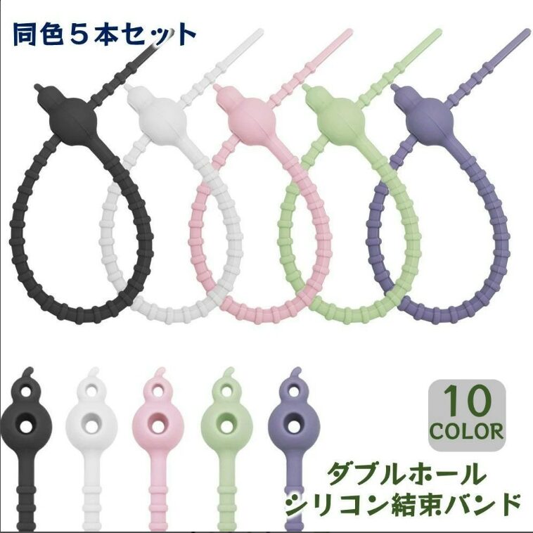 5色の結束バンドがセットになっているので、色分けして目印にしたい時に便利ですね。