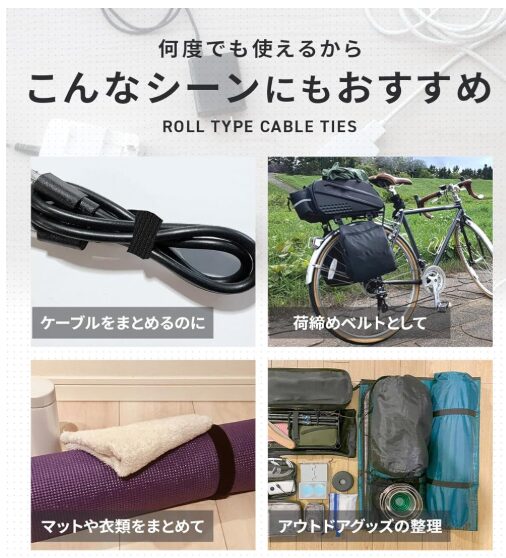 こちらのお値段は110円で、繰り返し使えるので配線を束ねるのにも使いやそうですね。