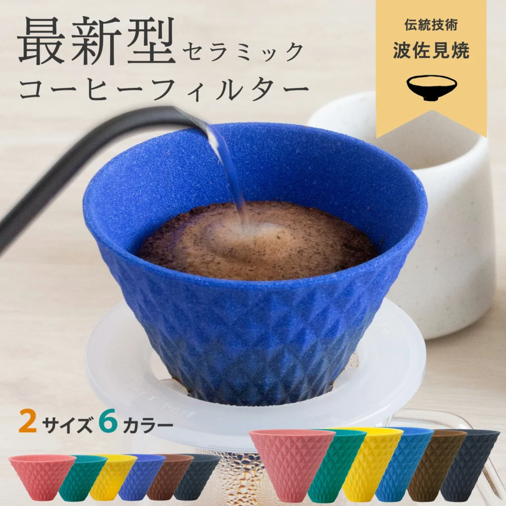 | 波佐見焼 セラミックコーヒーフィルター | ★4.46 (26件) | ・1杯用:口径9.0cm×高さ5.8cm ・3~4杯用:口径11.0cm×高さ9.0cm | ・ペーパーレスで繰り返し使用可 ・陶器素材で熱保持性とやわらかな味わい | 楽天市場 | 3,850〜5,995円 | 無料 |