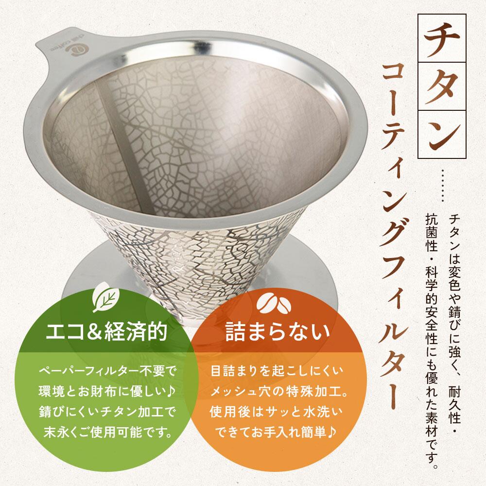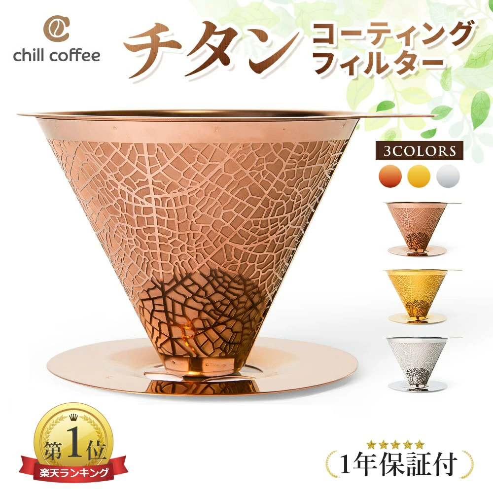 | チルコーヒー コーヒーフィルター | ★4.59 (366件) | 直径11cm×高さ8.5cm | ・チタンコーティングで目詰まりしにくく ・錆び、変色に強い ・抗菌、耐久性◎ | 楽天市場 | 2,880円 | 無料 |