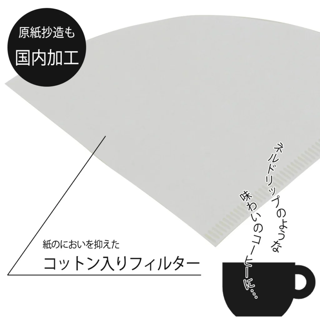 - 紙の臭いを抑えたコットン入りフィルターで、ネルドリップしたコーヒーに近い味わいを表現。