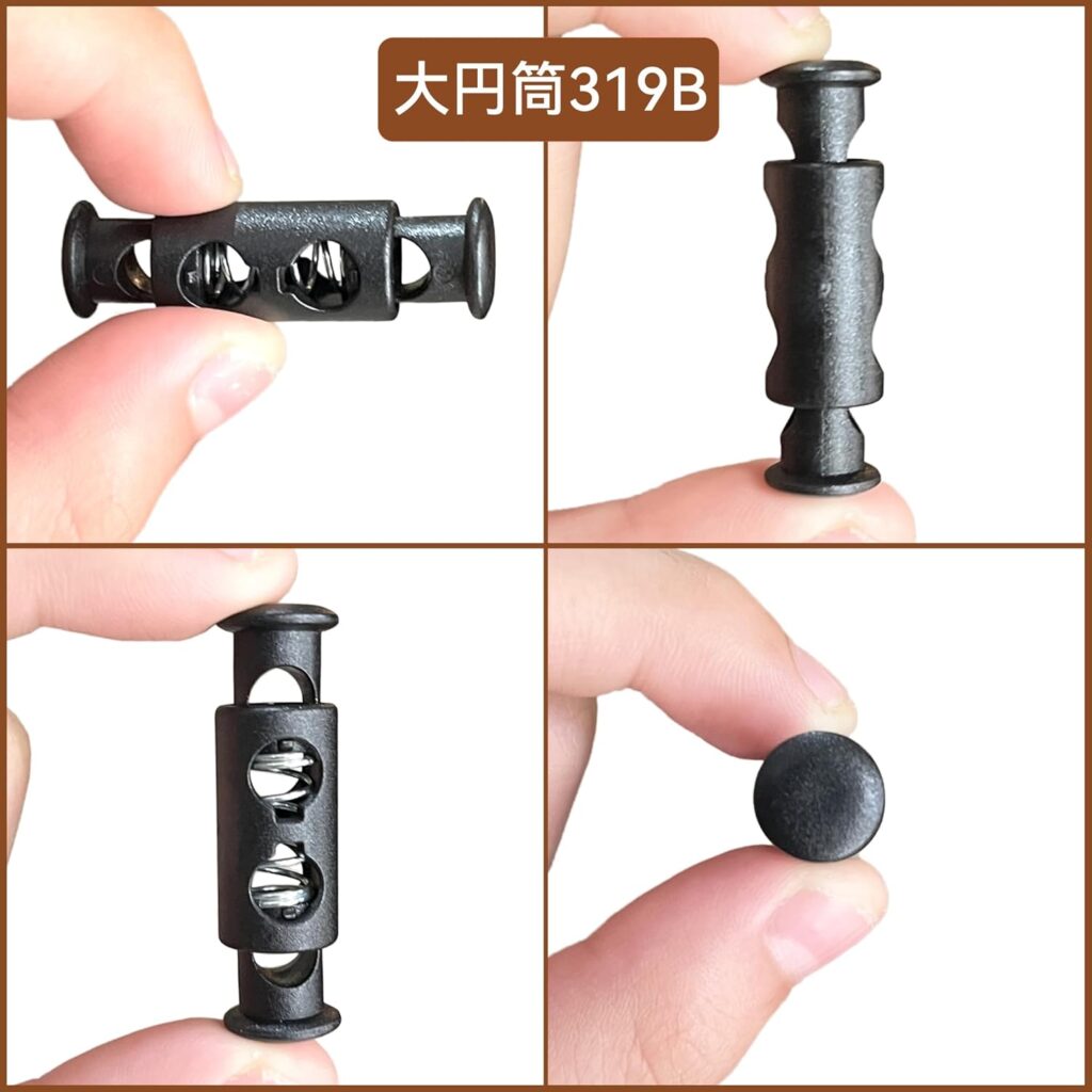 「円筒形で紐をしっかり固定できるコードストッパー」をお探しなら、「DLLM コードストッパー」がオススメですね。