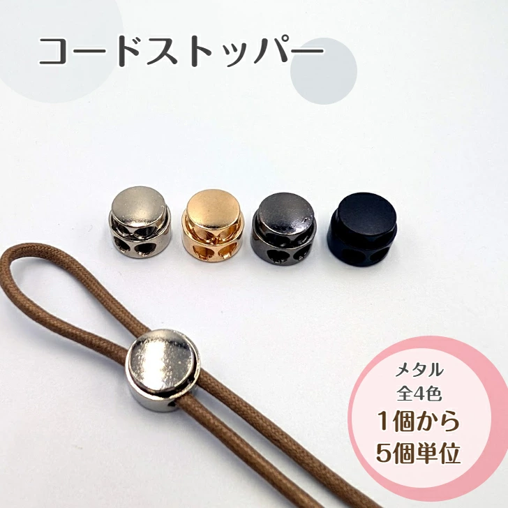 「丸型&高級感のあるメタル素材」をお探しなら、「コードストッパー コードロック 2つ穴」がオススメですね。