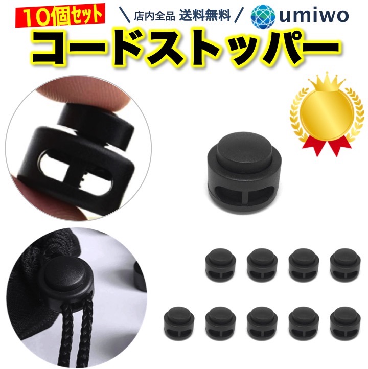 | umiwo コードストッパー | ★4.57 (76件) | 直径1.8cm×高さ1.5cm / 2g | ・シンプル機能でしっかり留まる ・靴紐、帽子、ウエスト紐の長さ調整に最適 | 楽天市場 | 450円 | 無料 |