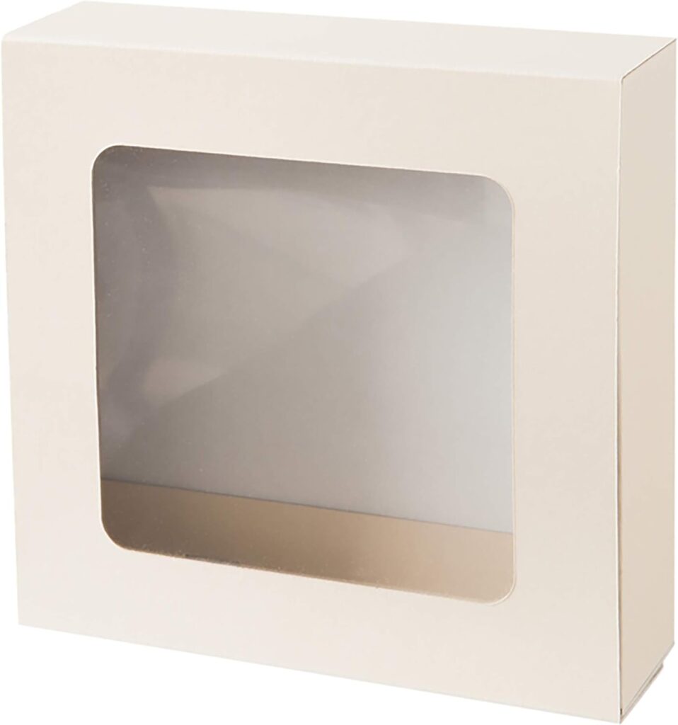 - フタの部分に大きな窓のついた、身ふた一体型のギフトボックスで、透明度の高いPET素材の大きな窓から中身がきれいに見えます。