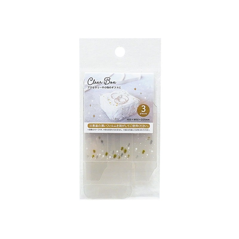 | 特徴 | ・香水モチーフのクリアボックス ・シンプルタイプやキャラクター柄、窓付きタイプもあり | ・窓付きボックス、ケーキ型、カラフル・アンティーク柄など豊富な種類 | ・結晶柄のクリアボックス、星柄タイプ、折りたたみや深型タイプあり |