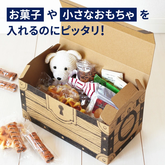 | 宝箱ダンボール ギフトボックス | ★5.00 | 内寸:幅27.9 × 奥行15.2 × 高さ14.9 外寸:幅28.2 × 奥行15.7 × 高さ15.5 | ・インパクト抜群の宝箱型 ・B式底組タイプで組み立て簡単 ・全面デザイン印刷 | 楽天市場 | 2,450 〜 17,700 円 | 無料 |
