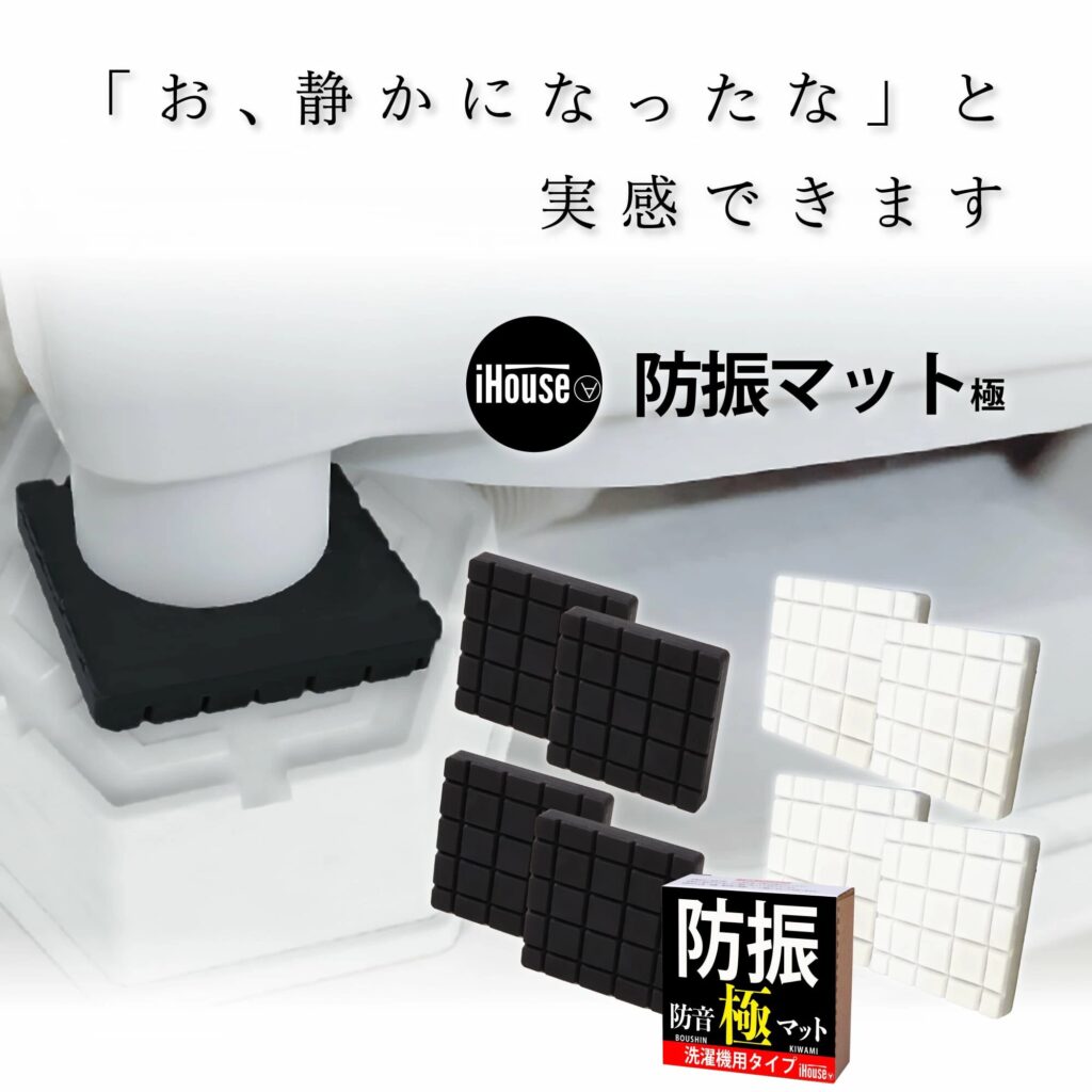 | iHouse 防振マット | ★4.56 / 1,799件 | 60mm×60mm×厚さ10mm(4個セット) | 極厚ゴムで振動吸収・防音効果/洗濯機用/格子状構造で振動軽減 | 楽天市場/¥1,380 送料無料 |