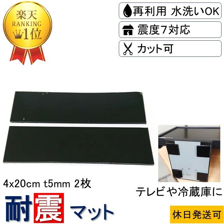 | ノンブレン 耐震マット | ★4.64 / 154件 | 40mm×200mm×厚さ5mm(2枚セット) | 繰り返し使用可/家具・家電の転倒防止/震度7対応 | 楽天市場/¥2,860 送料無料 |