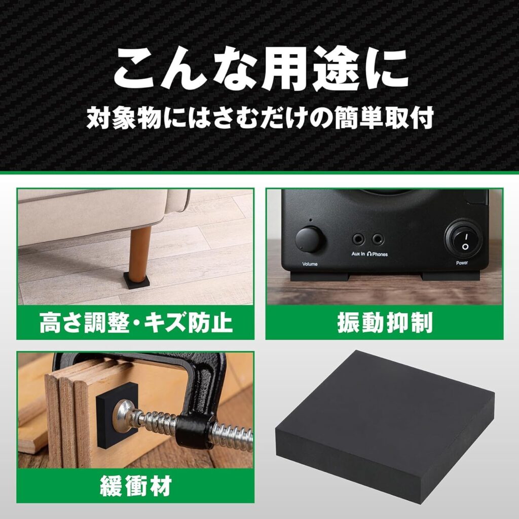 - 家具の高さ調整や滑り止め、防音・防振マットとして使用可能。