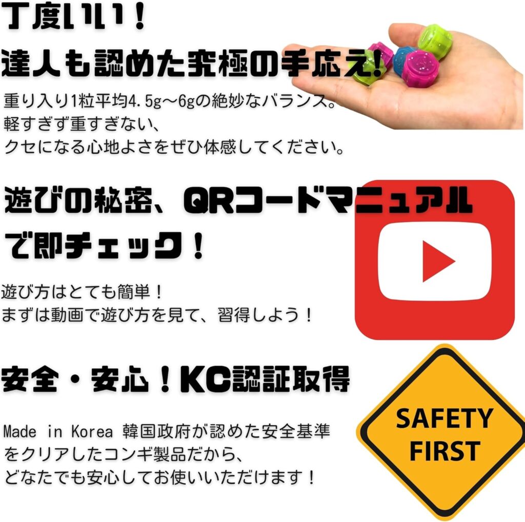 | 韓国おもちゃ コンギ | ★4.6(8件) | 長さ11cm × 幅8cm | ・伝統文化に触れられるコンギセット・プラスチック製・大小12コ&6コのセット・推奨年齢8歳以上 | Amazon価格:記載なし送料:無料 |