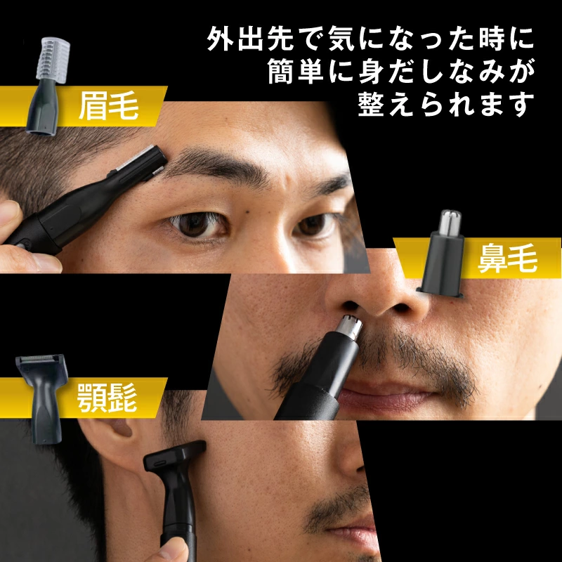 • 鼻毛カッター・眉毛シェーバー・耳毛トリマー・もみあげトリマーとして使える交換式ヘッド付き。