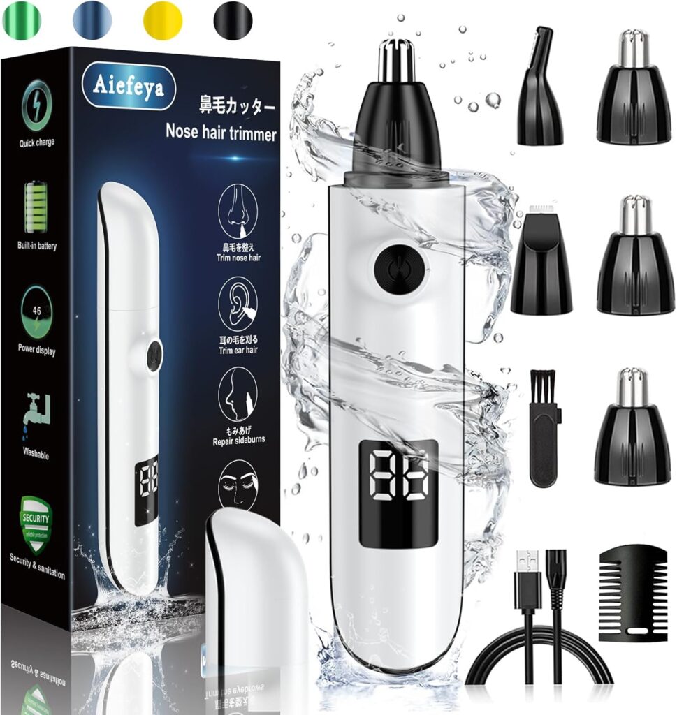 「デジタル画面で電力残量が一目でわかる」商品をお探しなら、「Aiefeya 鼻毛カッター」がオススメですね。